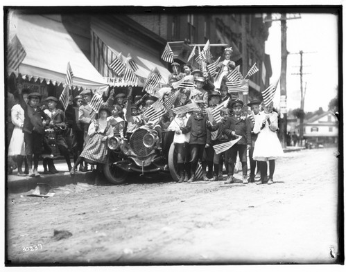 neg 3037: car 1908 Franklin, possibly during 4th of July (?), wonderful faces and clothing, exposure good.